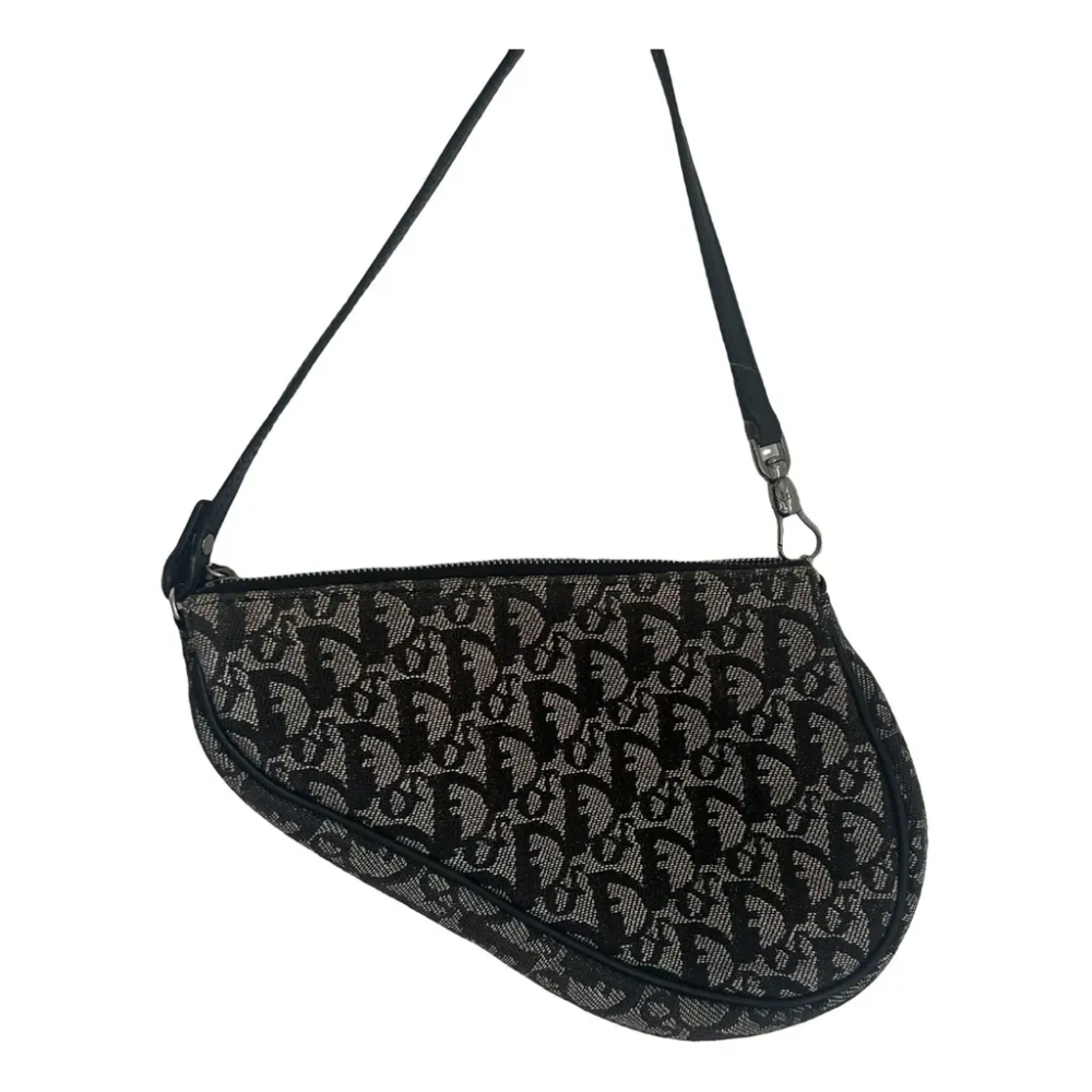 Christian Dior Vintage Diorissimo Saddle Pochette in Black Canvas
